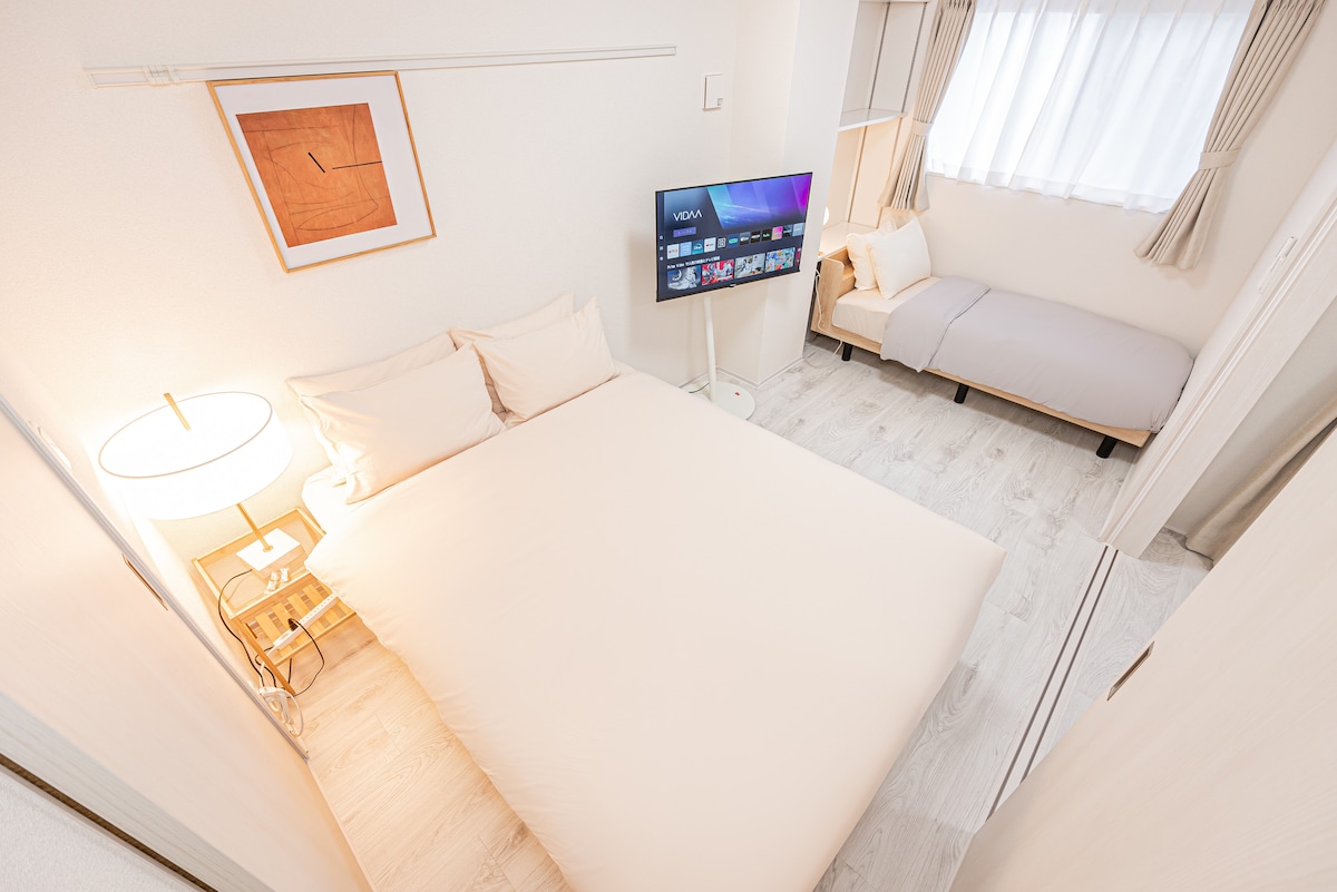 【NEW】新築|新宿直通|東京・秋葉原・浅草・スカイツリー近い|最寄駅1分|ベッド2台|3人宿泊