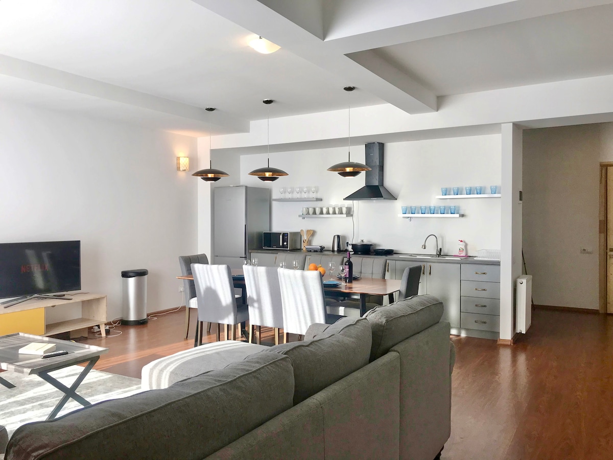 This beautiful Apartment is located in Heart of New Gudauri, walking distance from the main Ski lift, "Gondola"! A queen-sized bed with sleep-promoting mattress and comfy double-sized sofa , with a fully stocked kitchenette for home cooking, board games and amazing cozy atmosphere.