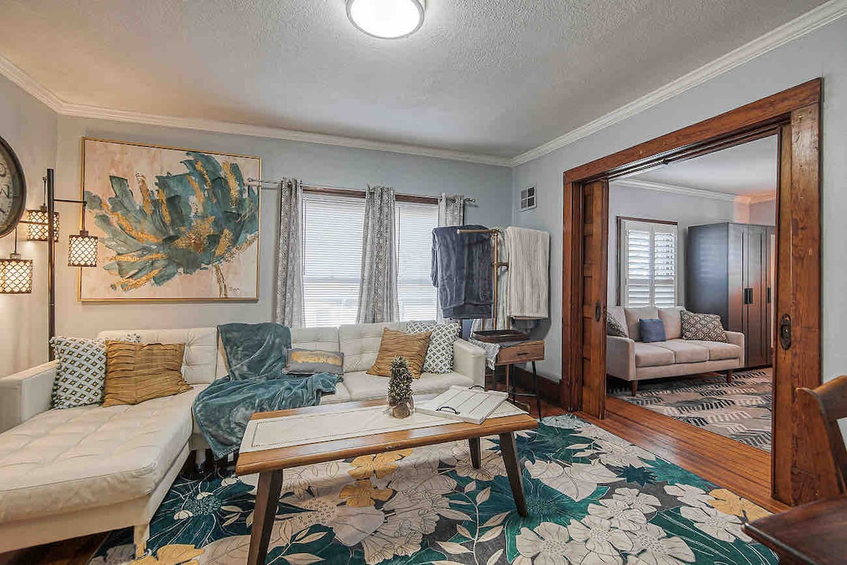 Come stay for a cozy getaway in the charming town of Liberty! House is within walking distance of Liberty square, Hammerhand Coffee, Price Chopper, Family Tree Nursery, Quiktrip, etc. 20 min to downtown Kansas City. 19 min to stadiums. 23 min to airport. Family-friendly space. There’s a baby crib in a closet, just let me know if you need it set up ahead of time. The house is 100 years old, so it has lots of creaks and character, but I keep it maintained and clean for my wonderful guests!