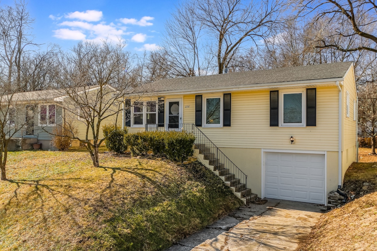 Welcome to my comfortable 25x12 Airbnb suite in a nice, safe neighborhood 2 minutes from the highway & 20 minutes from the airport or downtown Kansas City. Your private space & bath are just inside the front door & you are literally 6 level steps from your car. The space includes a kitchen, sitting area & bedroom area with plenty of natural light. My shady front yard has a bench & swing & there is a beautiful park at the end of the street. Plenty of shopping & restaurants within a 3 mile radius.