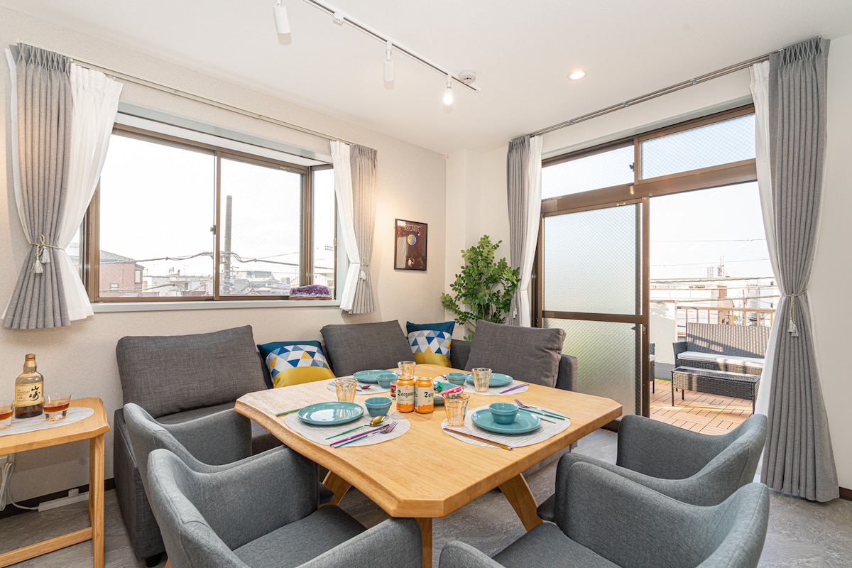 The property is located along the river, a few kilometers away from the heart of Tokyo, and just a 10-minute walk from JR Koiwa Station. The location is in a safe neighborhood and The property offers stunning views from the rooms and rooftop, making it an ideal place to relax and unwind with family and friends. It is perfect for those seeking to escape the hustle and bustle of the city, families planning a vacation, couples, solo travelers, and anyone looking for a peaceful retreat.