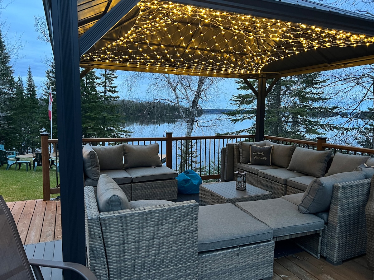 Welcome home. Relax in your luxurious bed, so close to the lake you can hear it breathe. Your cabin, is nestled on the shores of Abram lake and is located minutes from down town. Our home is the longest serving rental on Airbnb in Sioux Lookout. When relaxing on the deck or from the master bedroom, the water is so close you feel like you could reach out and touch it. Its' cozy tranquillity is perfect for a couple in need of escape. Full kitchen, laundry facilities, and dock, are available.