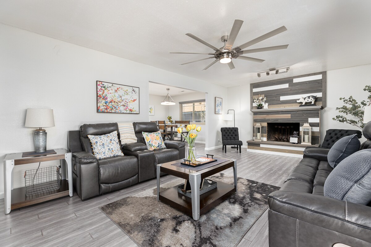 ¡Impresionante casa de campo digna de una revista! Disfruta de las vistas de Orange Grove y de la falda. ¡Cerca de Sequoia NP! ¡Cuenta con chimenea, cargador Tesla EV, barbacoa, bicicleta Peloton, sala de juegos, WiFi y ping pong!