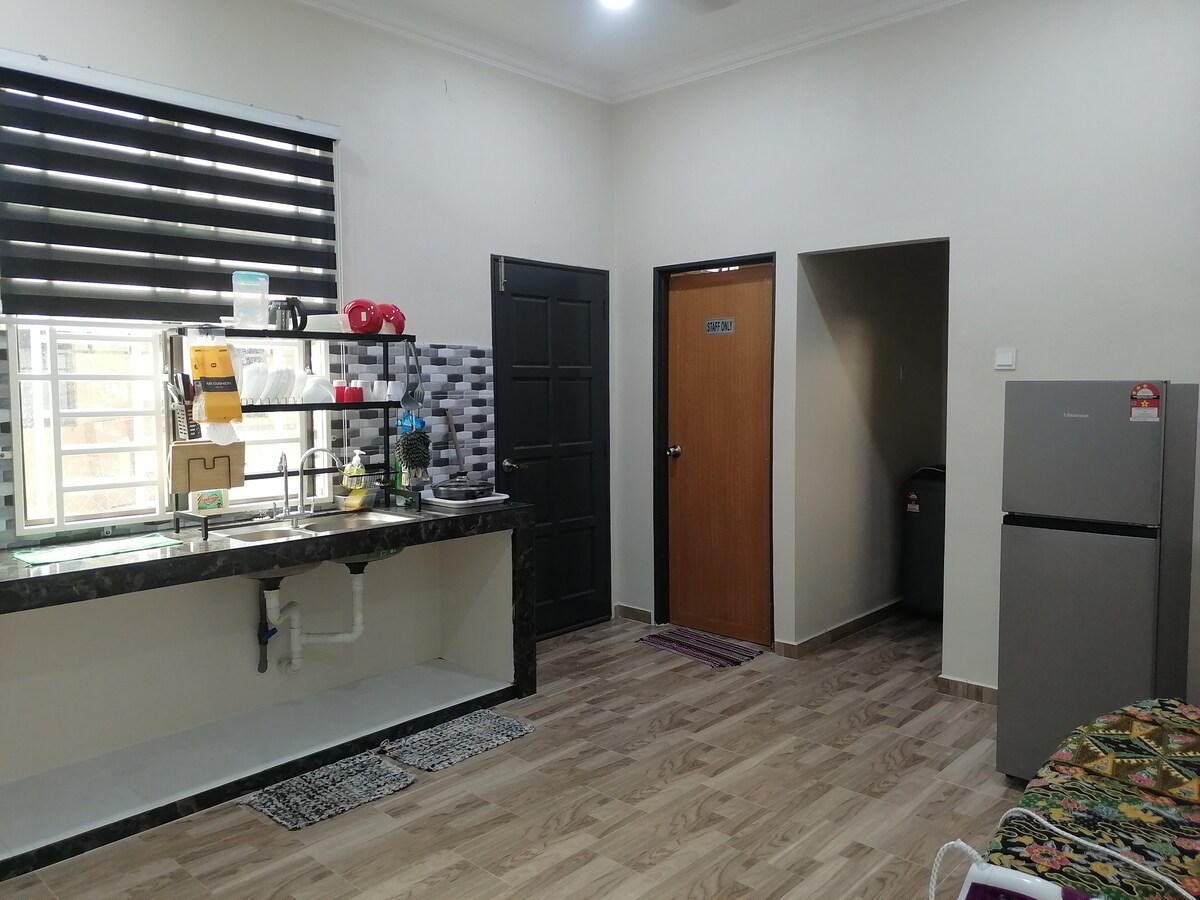 ▪️Ubicación cerca del mercado Melor. 🔹Casa aterrizada en un bungalow de 1 nivel ▪️Fácil acceso desde la carretera principal 🔹4 habitaciones con cama tamaño queen y aire acondicionado en todas las habitaciones ▪️3 baños (2 baños tienen calentadores de agua) 🔹️Wifi gratuito ▪️Android TV (YouTube, Netflix 🔹Sala ▪️Sala deTV 🔹Cocina El ▪️espacio de estacionamiento tiene capacidad para 5 autos y un espacioso patio de la casa. 🔹 Máximo 15 huéspedes ???? 📍 Mercado de Melor - 8 min. 📍Ketereh/Kok Lanas - 15 minutos 📍UMK Bachok - 20 minutos 📍Pasir Tumboh - 20 minutos 📍Wakaf Che Yeh - 25 minutos
