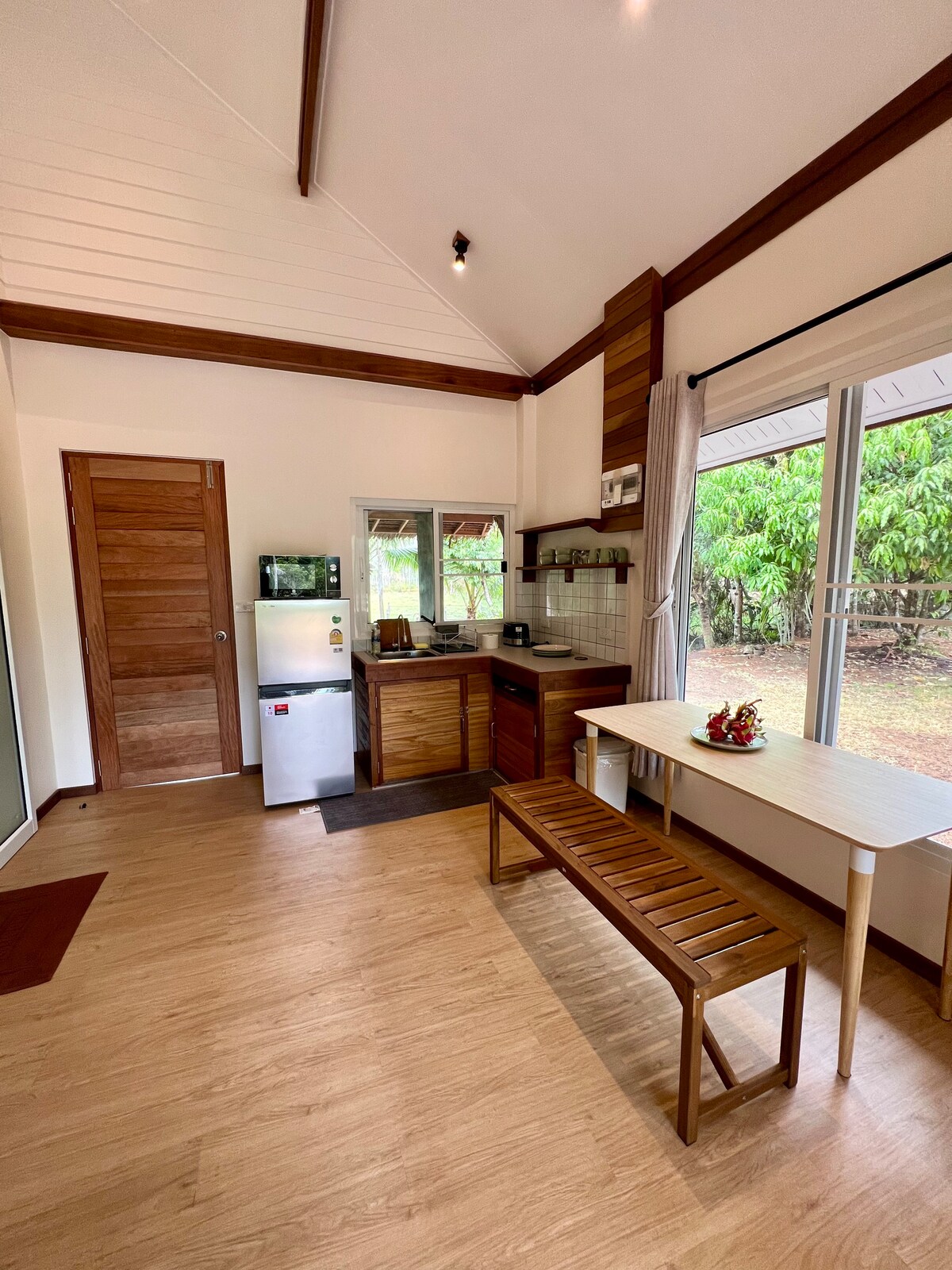 Bienvenido a nuestra acogedora granja, ubicada en medio de una vegetación exuberante y construida con amor a partir de los árboles que nosotros mismos plantamos. Sal y te encontrarás en el corazón de un tranquilo huerto frutal, perfecto para relajarte y disfrutar de las tranquilas vibraciones de la naturaleza. Es una verdadera escapada a la serenidad, rodeada de aire fresco y paisajes impresionantes.