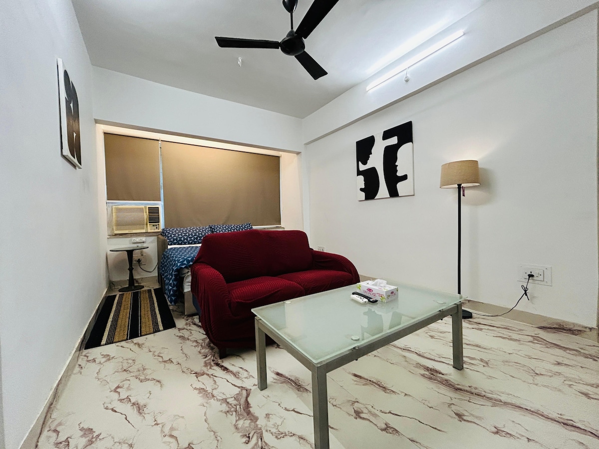 Instaworthy 1BHK con bañera, TV inteligente y relajación