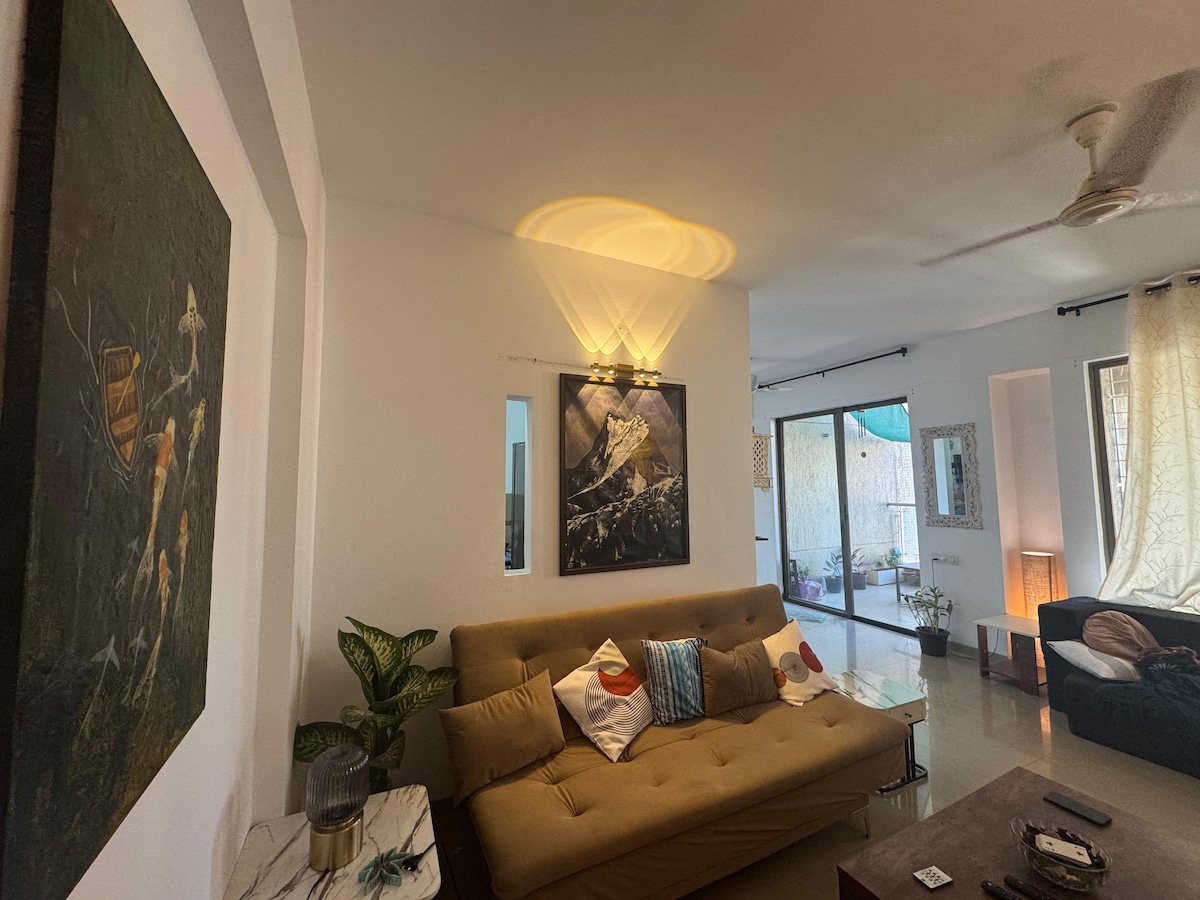 - Fully Furnished, Completely Private 1BHK in Pune (Near Panchshil Towers, Kharadi) - Functional Kitchen with Basic Utensils to cook your own meals - Home-cooked Meals (Freshly made in our home kitchen) Available. - 100 Mbps high-speed Wi-Fi with UPS power backup - Dedicated caretaker (on-site) for assistance - Easy doorstep access to Swiggy, Zomato, Blinkit, Ola & Uber - No pets, No Parties Note: 2nd-floor apartment (no elevator); caretaker assistance available for luggage.