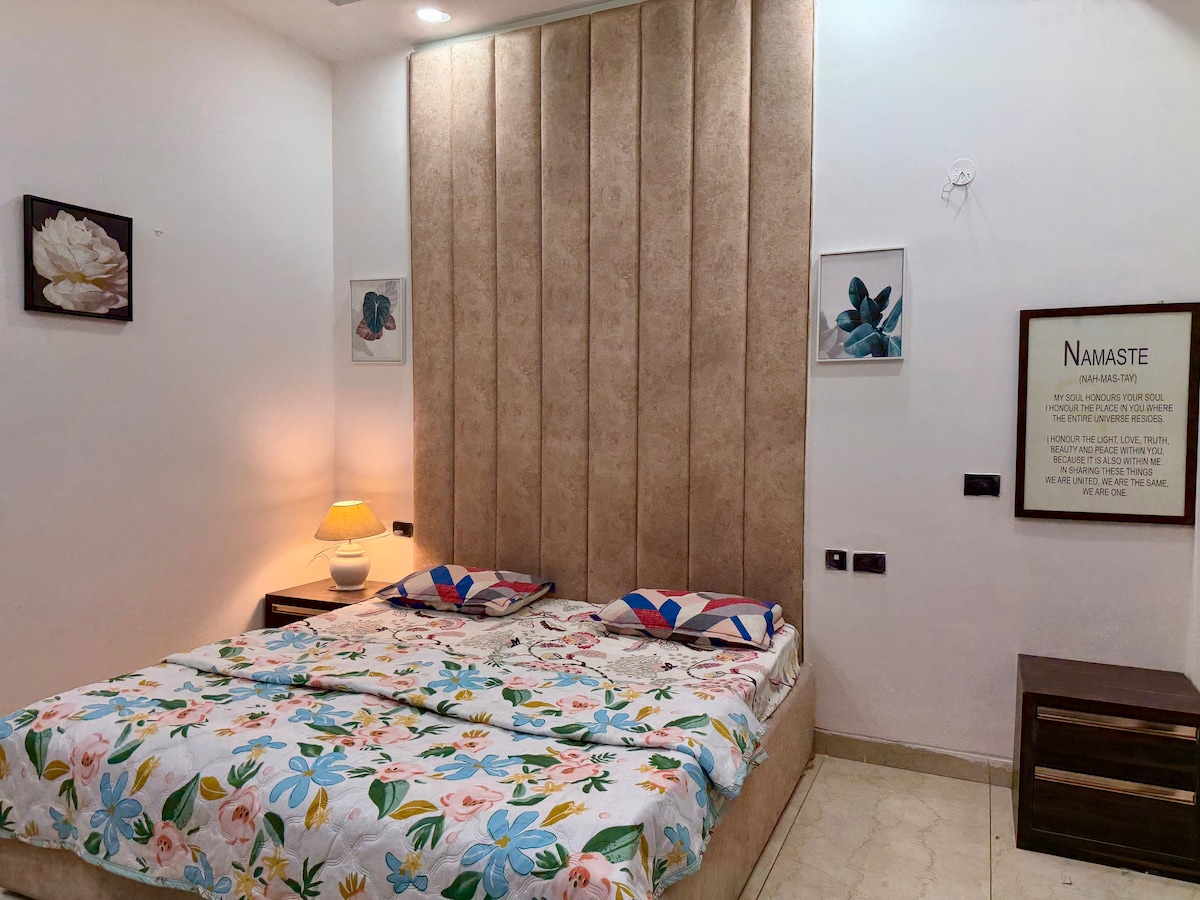 El primer apartamento de 2 Bhk que cumple con todos los requisitos ✨ - 2 dormitorios ( dormitorio principal, segundo dormitorio). - Dos camas tamaño king. - Una amplia sala de estar con una cómoda disposición de asientos. - 2 baños ( 1 en cada uno de los dormitorios). - Cocina pequeña (con todos los utensilios básicos de cocina disponibles y servicios abastecidos, es el lugar perfecto para preparar tus comidas favoritas) - Una zona de balcón compartido que conecta con el apartamento, que puede ser el espacio perfecto para tus paseos nocturnos. ¡Reserva ahora!