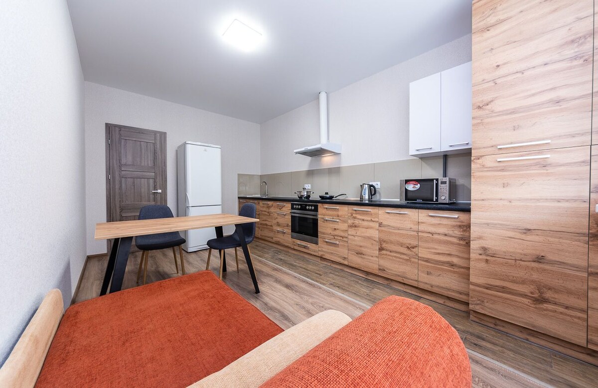¡Apartamento nuevo de una habitación con diseño de interiores, cálido y acogedor, con calefacción individual y SUELO RADIANTE EN EL BAÑO! El apartamento tiene todo lo necesario para vivir: una cama suave y fragante y toallas esponjosas, todos los utensilios y electrodomésticos necesarios. ¡Internet de alta velocidad también a tu servicio! El apartamento está situado en una ubicación muy conveniente, en un PATIO CERRADO CON APARCAMIENTO, cerca de tiendas y paradas de autobús. ¡Siempre estamos encantados de recibir a los huéspedes y esperamos verte!
