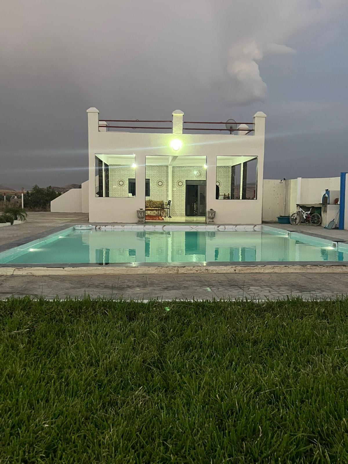 Muy bonita villa de la compañera en lagfaf, región de khouribga , muy tranquila y sin vecinos ,con piscina ,garaje , jardín y terraza . Aire acondicionado ,amueblado con todas las comodidades . Las tiendas de conveniencia están a 500 m de la casa, así como la estación de tren .