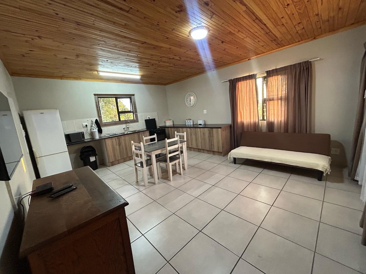 Un hogar lejos de casa, este apartamento cuenta con TV, cocina pequeña con refrigerador, microondas y estufa de gas de 1 quemador, y un patio con instalaciones braai. Se proporciona toda la ropa de cama y toallas, y el baño privado incluye inodoro, ducha y lavabo.