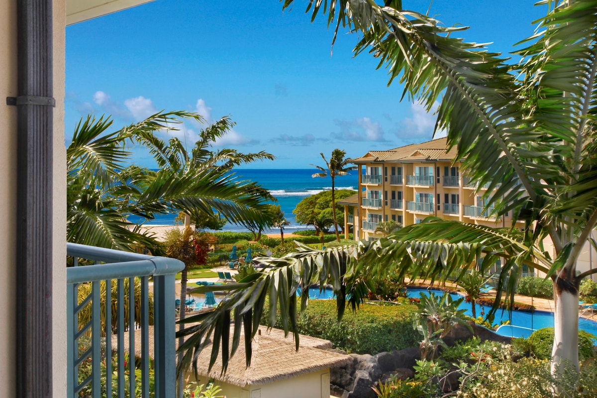 ¡Vista al mar y aire acondicionado! ¡A 3 minutos a pie de la playa de Poipu!