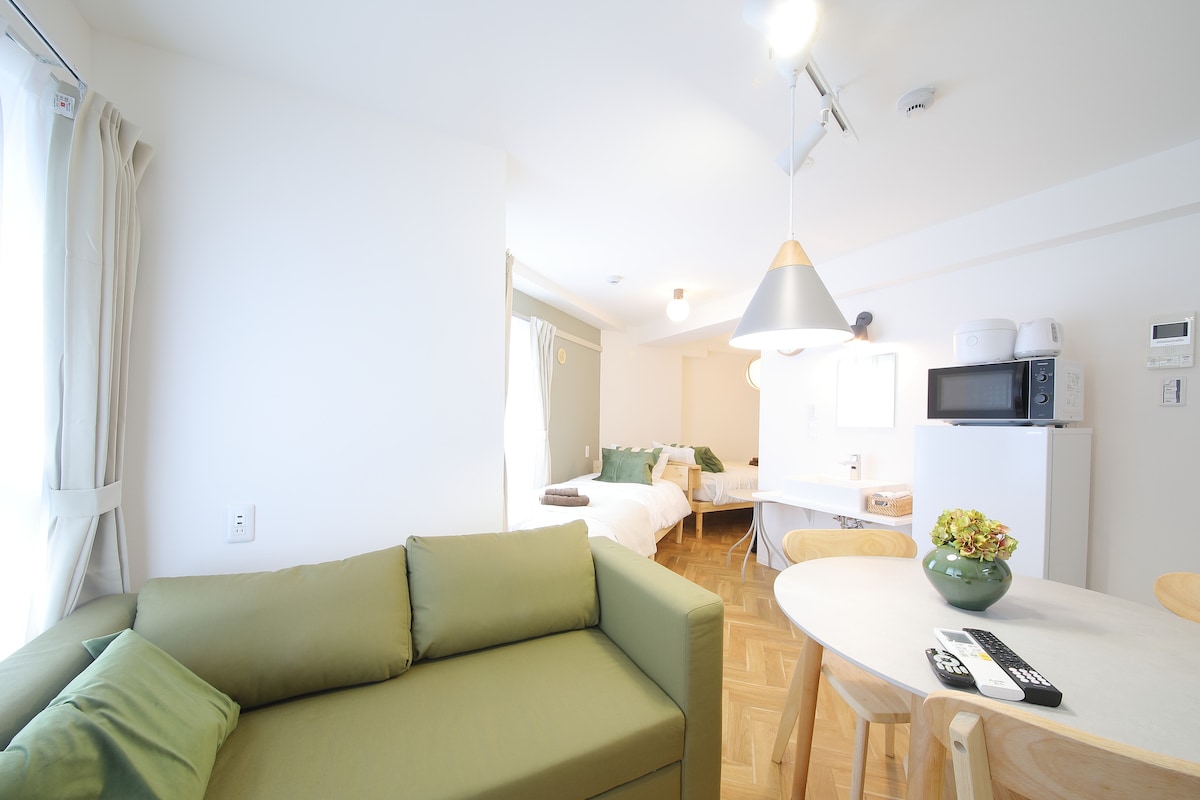 New! Comfortable! Affordable! 1BR apartment (1D beds + 1 sofa bed + 2 futon) for 1-5 people at an affordable price near central Sapporo! 3-min walk to subway(Kikusui sta) and easy access to Sapporo sightseeing spots! Free wifi & Paid parking ! Auto-lock system security! Quiet neighborhood + supermarket/convenience stores/restaurants are within a 10-min walking distance! Host-on-call 24/7!