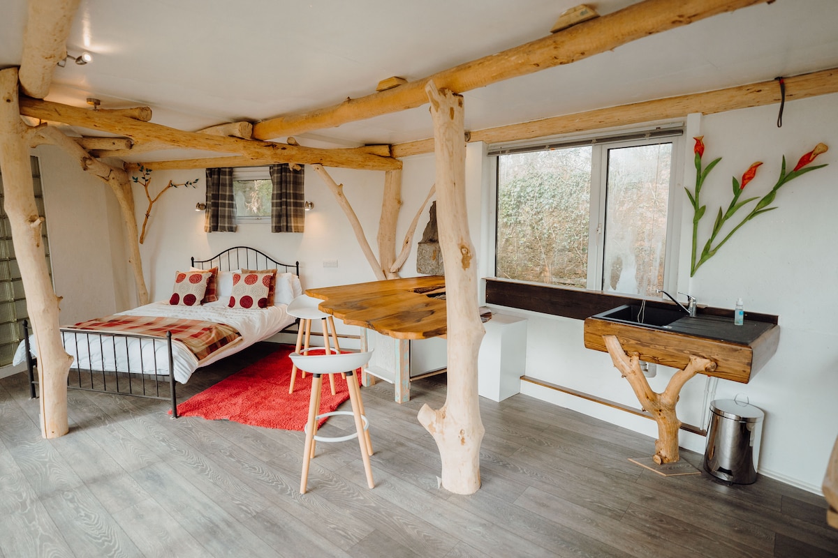 Ven y quédate en nuestro exclusivo retiro esculpido a mano en los terrenos de Begelly House. Cerca del sendero costero de Pembrokeshire con sus hermosas playas, estarás en una ubicación privilegiada para visitar las ciudades costeras de Tenby y Saunderfoot o el peculiar pueblo de Narberth. Hemos utilizado todas nuestras habilidades de escultura y diseño para hacer de este alojamiento un lugar especial. El Cwtch está diseñado para una estancia relajante para parejas.