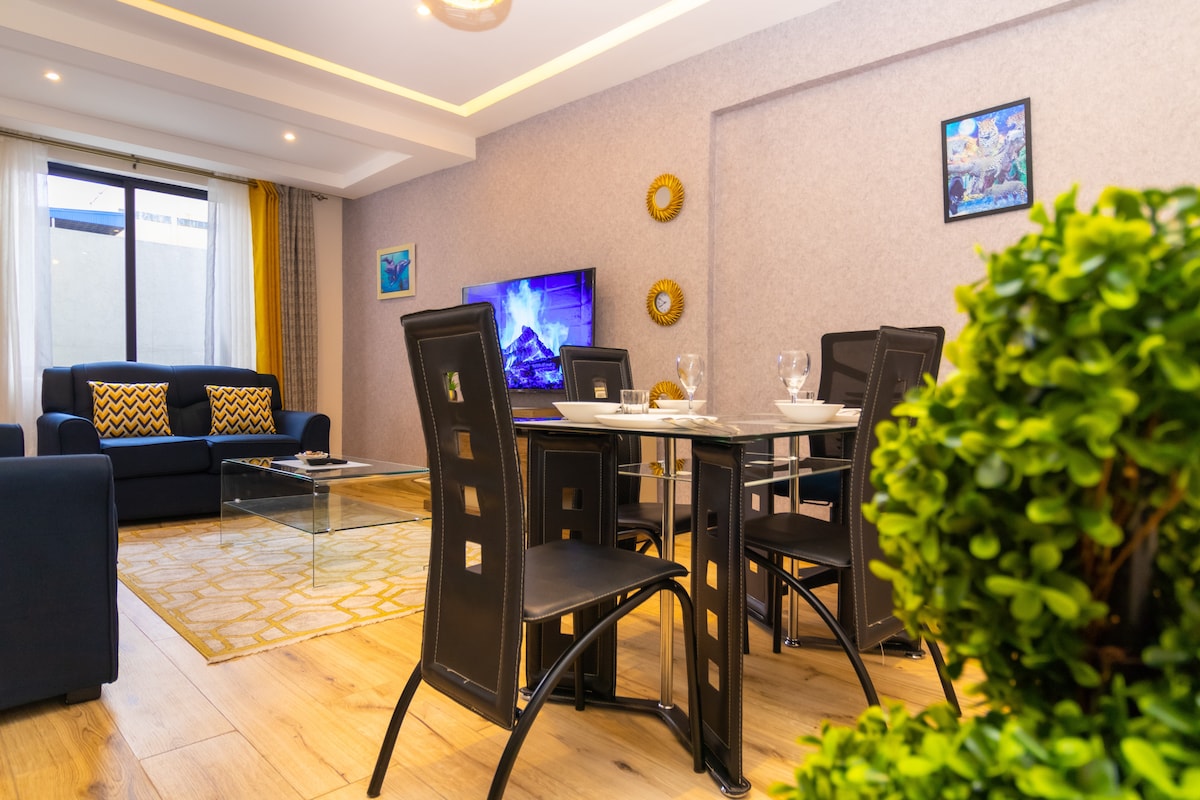Lugar muy relajante y perfecto para desconectar que te hace sentir como en casa lejos de casa. El apartamento está situado en una zona muy agradable de Nairobi, cerca de famosos centros comerciales, bancos, hospitales, restaurantes, bares y discotecas. La zona es muy segura y muy famosa entre los expatriados y los extranjeros en general. Nuestro edificio Elite te da una sensación de seguridad, desde el momento del registro notarás cómo nuestros guardias son cuidadosos con quién entra y sale del edificio. Tenemos excelentes servicios para atraer a nuestros huéspedes.