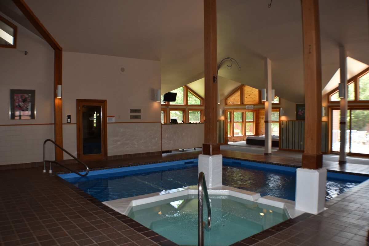 Oso Dream ofrece INCREÍBLES vistas panorámicas de Bear Mountain. ¡Sal por la puerta principal y esquía por la pista Sundog hasta Sunrise Village Triple o sal por la puerta trasera y súbete a la pista Bear Cub para acceder a Bear Mountain! Disfruta de las comodidades dentro del complejo, que incluyen piscina climatizada interior y exterior (de temporada), sauna y gimnasio. Los huéspedes también tienen acceso a la pista de patinaje al aire libre y a las pistas de esquí de fondo (si el tiempo lo permite). ¡Uso gratuito de patines sobre hielo, equipo de hockey, raquetas de nieve, esquís de fondo, bastones y trineos!