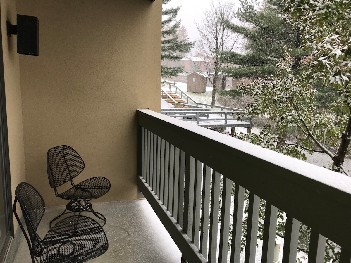 Disfruta de servicios de lujo, cerca de Killington Peak. ¡Este soleado apartamento de 2 dormitorios es perfecto para esquiadores y excursionistas! Un servicio de traslado gratuito va directamente desde los casilleros de esquí del edificio hasta Snowshed. Durante la temporada de esquí, circula cada 15 minutos. Aprovecha el Mountain Green Resort: una piscina cubierta climatizada (agua salada), una piscina al aire libre en verano, jacuzzis, saunas, una sala de vapor, salas de ejercicios y spa (tómate un masaje). Una tarjeta RFID en tu unidad proporciona acceso a esas áreas.
