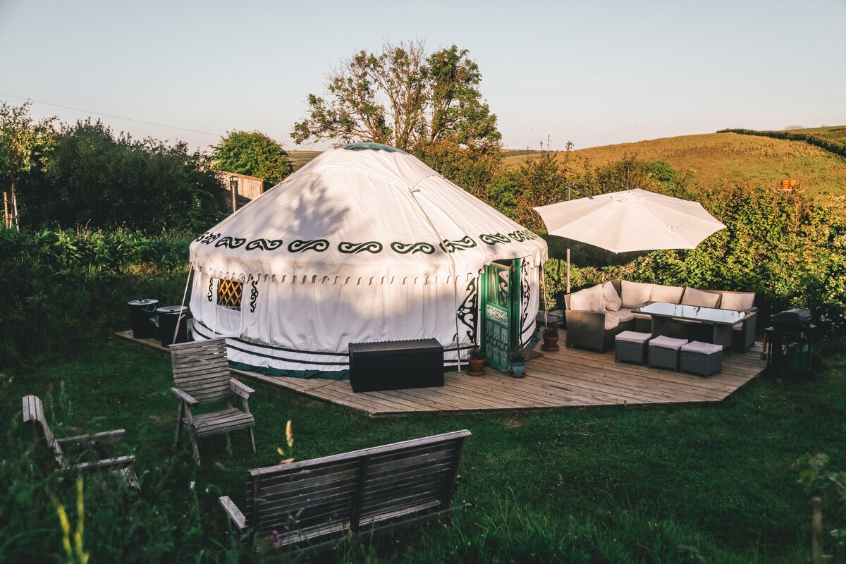Ubicada en un jardín privado en nuestra granja de 30 acres, la yurta cuenta con todo lo que necesitas para unas vacaciones perfectas. A 3 millas de la hermosa costa de South Devon y con fácil acceso a los servicios locales. La yurta está amueblada cómodamente con cocina, comedor, asientos y áreas para dormir, tiene electricidad y una estufa de leña. La cocina está totalmente equipada. En el exterior hay estacionamiento privado, una terraza con muebles y sombrilla, barbacoa, césped y fogata con sillas de jardín. Instalaciones extra compartidas: baño, juegos, paseos, congelador