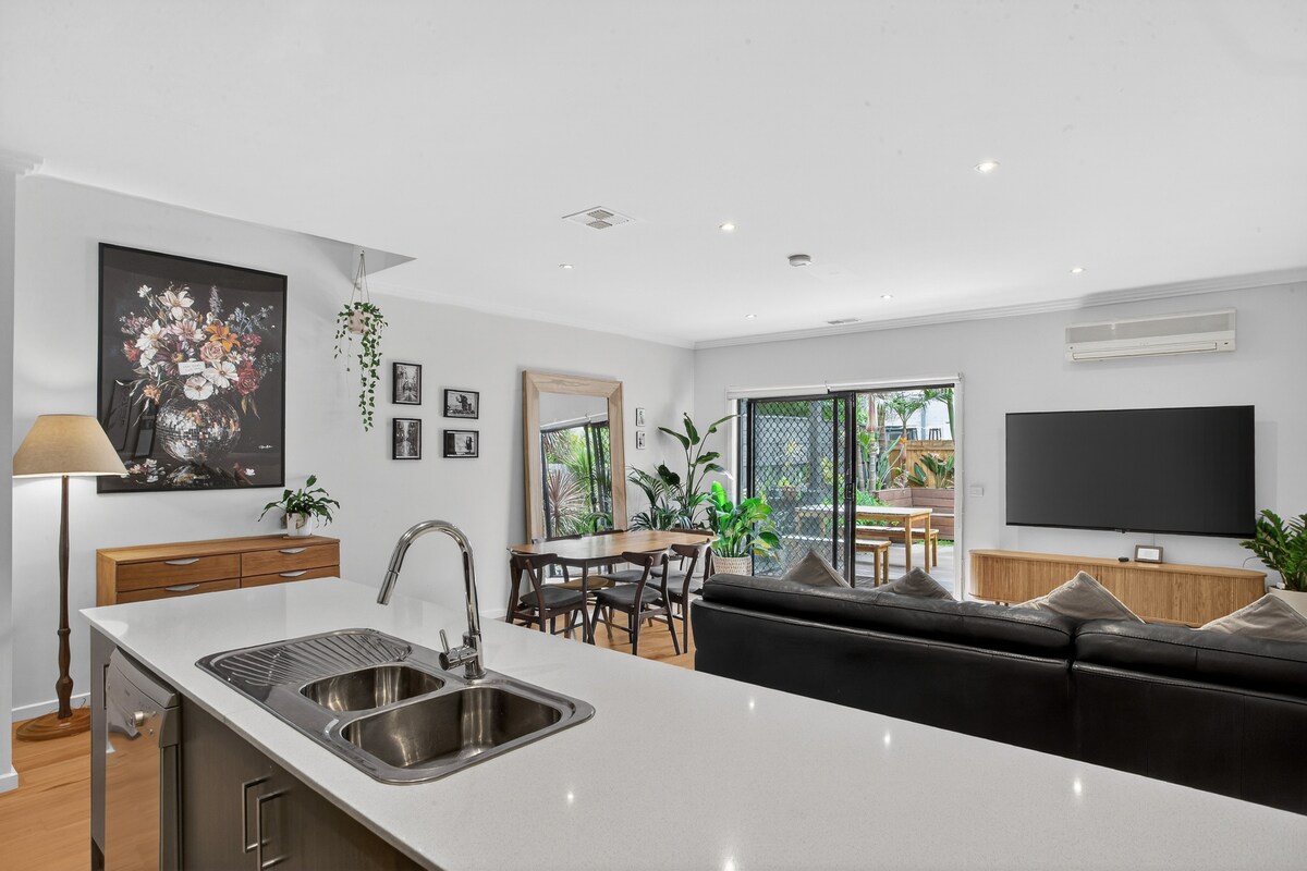 Nuestra encantadora casa adosada está a solo 3 minutos a pie del secreto mejor guardado de Melbourne: el pueblo de Yarraville. Cuenta con diversos restaurantes, boutiques, cafeterías y el brillantemente restaurado teatro art déco Sun Theatre. Los trenes frecuentes desde la estación de Yarraville (a 2 minutos a pie) te llevan al centro de negocios en 10 minutos. A 10 minutos en la otra dirección está el santuario de la playa de Williamstown.