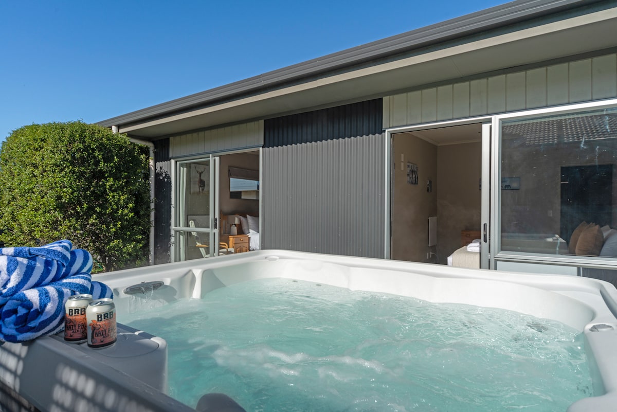 Relájate y desconecta en esta nueva microcasa. Situada tranquilamente en nuestro bloque de estilo de vida con vistas a las colinas y prados, rodeada de árboles. Cerca de Taupo y a 5 minutos en coche del hermoso pueblo junto al lago de Kinloch. Tómate una copa en la terraza o date un relajante baño en la piscina del spa. Cerca de senderos para bicicletas, rutas para caminar y campos de golf, con aparcamiento para un remolque (por favor, habla con nosotros antes de la llegada). Lamentablemente, en este momento no aceptamos niños ni bebés. Esta estancia es solo para adultos.