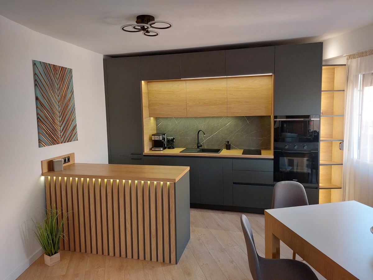 Departamento de lujo en el centro de Sliven, a solo unos pasos de la calle principal. El departamento es nuevo, está amueblado de forma moderna y diseñado para la comodidad de dos, máximo tres huéspedes. Amplia sala de estar con un cómodo sofá, cocina totalmente equipada con electrodomésticos, dormitorio con una cama grande y cómoda. El departamento ofrece Internet rápido, televisores inteligentes, aire acondicionado, iluminación de calidad, interiores lujosos y electrodomésticos nuevos. Es adecuado para viajes de negocios, parejas e invitados que quieren paz y un alto nivel de comodidad.