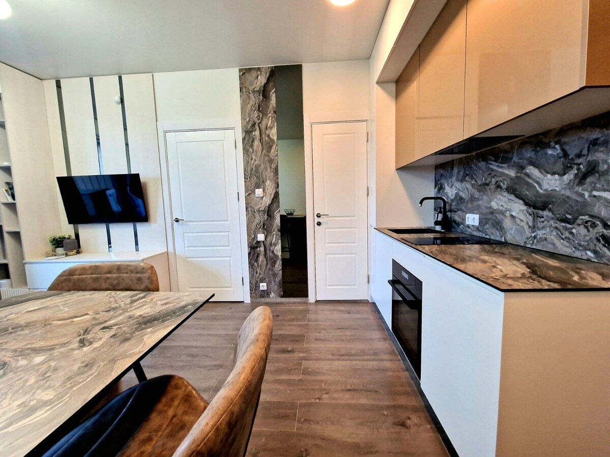 Los apartamentos están ubicados en el complejo My Sea, con una terraza increíblemente grande y una terraza acristalada con sombrillas eléctricas. Los apartamentos están equipados con muebles de lujo y materiales de calidad. Encontrarás todo lo que necesitas para tus vacaciones en el aparato. En la zona, puedes disfrutar de una piscina climatizada con tumbonas y sombrillas, área de barbacoa, parque infantil y por un cargo adicional por usar la sauna, jacuzzis.