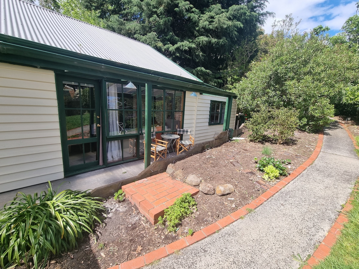Nuestra acogedora suite de invitados es donde el arte y el entorno verde se mezclan a la perfección para crear una estancia verdaderamente única e inspiradora. Nuestra propiedad es ideal para una pareja, situada en la planta baja, completamente privada, con todas las comodidades de un hogar. Está rodeado de nuestro jardín nativo único. Puedes explorar los interminables paseos por el monte en las cordilleras y parques de Dandenong. Nuestros municipios están llenos de cafeterías, pequeñas tiendas de gemas y tesoros únicos, excelentes restaurantes, destilería galardonada y un cine.