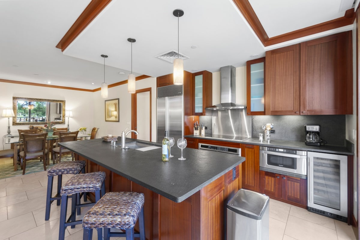 El 18 y el 25 de abril son nuestras próximas fechas disponibles en nuestra villa de 2 dormitorios de lujo, administrada por el propietario en Beach Villas en Ko Olina, a pasos de Disney's Aulani (no afiliado). Disfruta del lujo de un hotel boutique con vistas al mar sin obstáculos desde nuestros dos lanais frente al mar, estilo playero relajado y paseos fáciles al bar de la playa, restaurantes, tiendas, golf, puerto deportivo y luau. Los electrodomésticos Wolf/Sub-Zero, Sonos, LG OLED y los nuevos electrodomésticos Miele elevan tu estancia.
