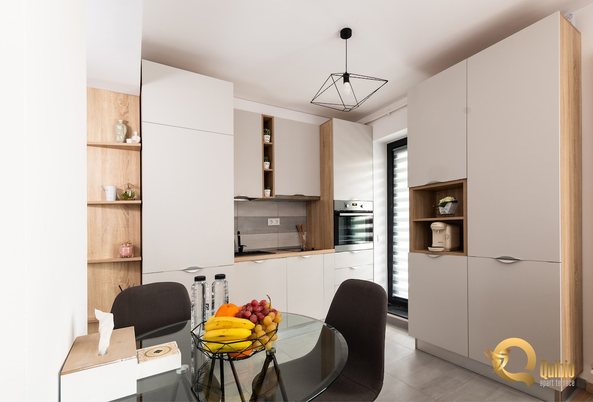 Quibio Apart Terrace se encuentra en un nuevo edificio residencial, situado en el Centro Cívico, frente al AFI Mall, a 5 minutos a pie y a 5 minutos en coche del centro histórico. Al elegir Quibio Apart Terrace, disfrutarás de un apartamento elegante, moderno y totalmente equipado. El apartamento consta de un dormitorio doble de 160/200 cm y un salón de espacio abierto equipado con 2 sofás, cocina equipada, baño con bañera, toallas, zapatillas y cosméticos de baño. Ofrece wifi, Netflix y aparcamiento gratuito.