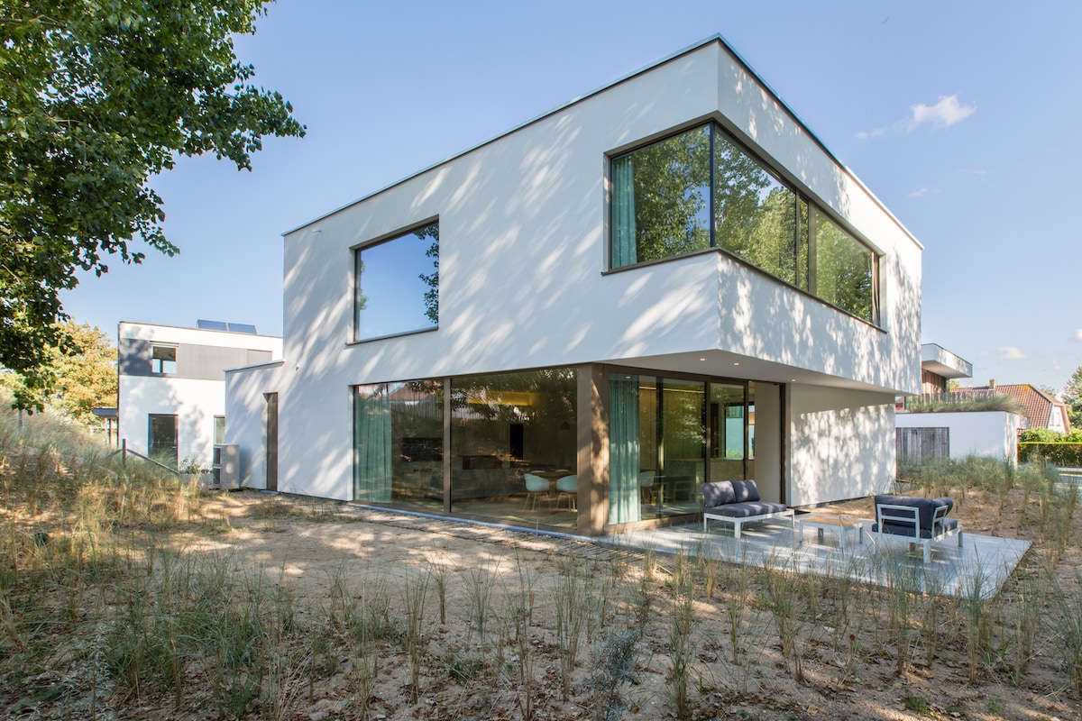 Lujosa casa de vacaciones de nueva construcción en Sint-Idesbald que está equipada con todas las comodidades. Situado en un tranquilo distrito de villas con amplio aparcamiento y un jardín ajardinado en estilo dunas, oportunidades de juego para niños. Debido a que la casa es la segunda línea y está a más de 30 metros de la vía pública, tu paz y privacidad están garantizadas. A pesar de su tranquila ubicación, el centro de Sint-Idesbald y la playa están a pocos pasos (10 minutos).