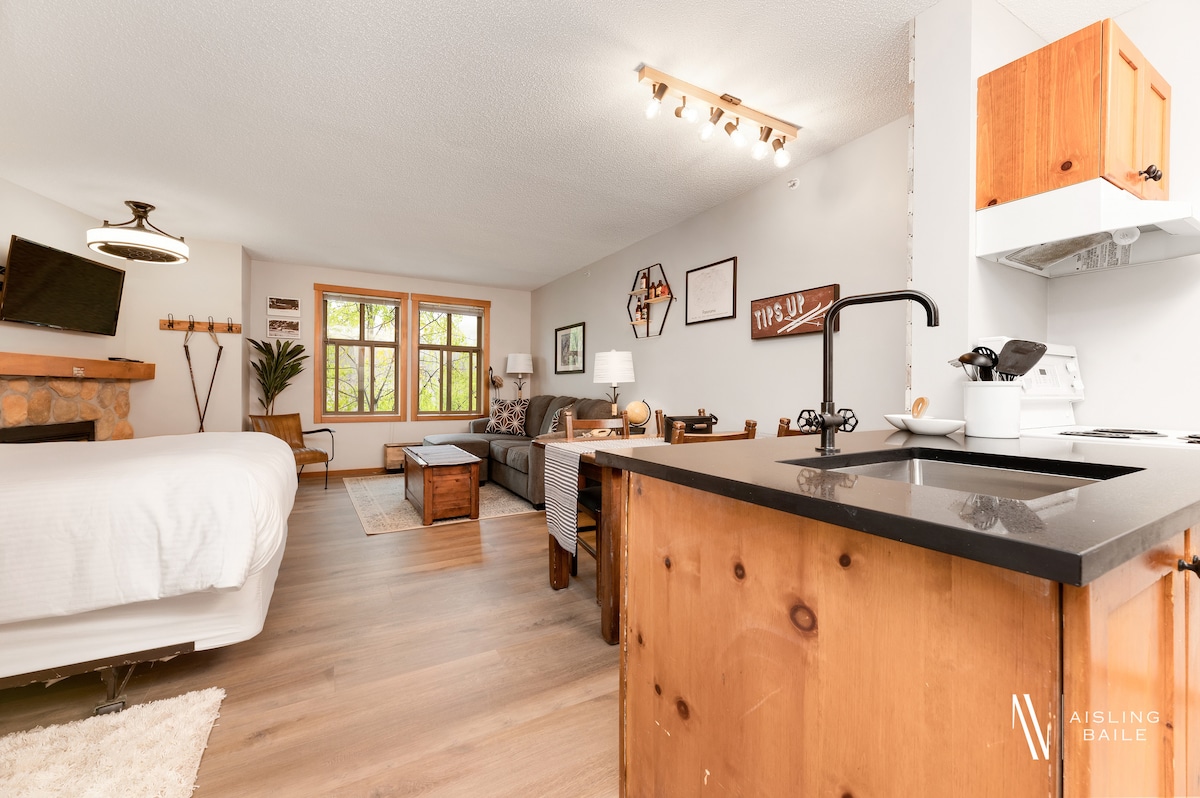 Imagina tener 1752 pies cuadrados solo para ti. No hay nada más cerca de la colina, a solo unos pasos del aparcamiento hasta los remontes. Una vez que dejes tu equipo en el casillero seguro para bicicletas/esquís dentro del aparcamiento, súbete al ascensor y guarda las piernas para el día siguiente. En el momento en que entras en el apartamento, no puedes evitar notar la vista de Granite Mountain a través de las grandes ventanas. Asegúrate de disfrutar del jacuzzi privado o simplemente ponte al día con tus programas favoritos en Netflix o Prime.