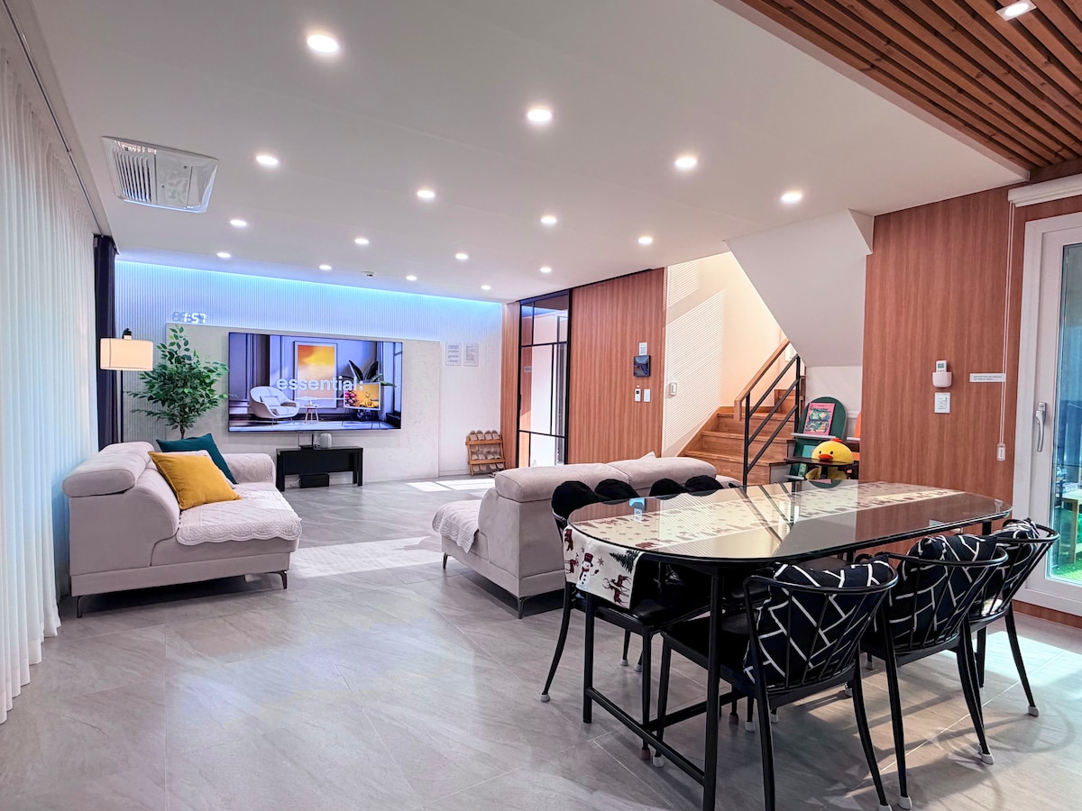 Situado en un complejo de casas adosadas tranquilo cerca de Heyri, Paju Este es un alojamiento privado espacioso, de 133 m2 y dos pisos. Nos ocupamos de todos los espacios para que disfrutes de una estancia relajante y agradable, La vista de la sala de estar abierta y la mesa de la isla son espacios impresionantes. Puedes ver la televisión, Netflix y OTT en la pantalla grande del proyector de haz. En el exclusivo patio al aire libre, puedes disfrutar de una chimenea y una barbacoa en privado, También puedes usar la minipiscina de madera natural y el jardín de césped con caquis y magnolios. Operamos con la gestión de la limpieza como nuestra principal prioridad, Este alojamiento es perfecto para un descanso especial con tu familia, amigos y amantes. Número de contacto 🙏🏻 del anfitrión (010_7129_1787)