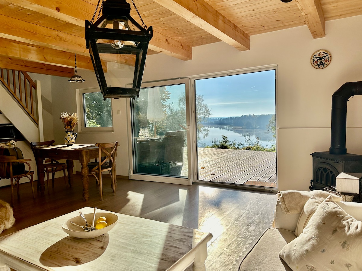Jest to bardzo nietypowy dom, pownieważ wynajmujecie go na wyłączność wraz z całą posiadłością, której połowę zajmuje całkowicie prywatne jezioro. W posiadłości znajduje się też: prywatny las, ekologiczny ogród i sad, park, kort tenisowy i boisko do siatkówki. Na miejscu macie do dyspozycji rower wodny, łódkę wędkarską, leżaki, sprzęt sportowy. W domu jest miejsce dla 18 dorosłych osób w 8 sypialniach. Są tu też 2 salony oraz taras z kuchnią letnią. Za dodatkową opłatą sauna i balia z jacuzzi.