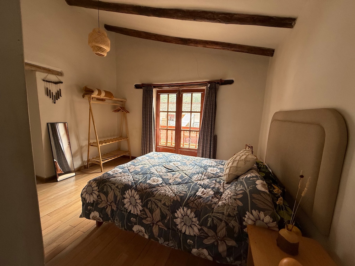 Departamento independiente en el centro de Pisac. Ubicado en la calle más turística del pueblo, a 1 cuadra de la plaza de armas y a 50 metros del mercado principal. El espacio es muy acogedor y silencioso. Totalmente amoblado y con cocina equipada. Ideal para parejas y/o familias pequeñas. Cuenta con una habitación privada con una cama matrimonial y sala con sofa cama. Puede consultarnos sobre actividades y experiencias para disfrutar en la zona.