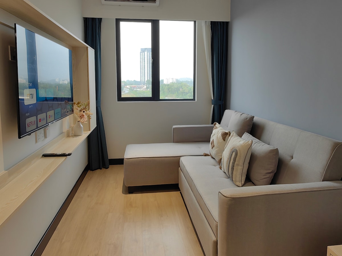 Disfruta de una experiencia elegante en este lugar céntrico. ¡Te damos la bienvenida a tu hogar lejos de casa en Kota Kinabalu! Ubicado en las modernas Vetro11 Designer Suites, este acogedor apartamento cuidadosamente diseñado ofrece todo lo que necesitas con una cómoda cama csofa, TV inteligente y Netflix de cortesía, perfecto para noches de cine después de explorar la ciudad o si estás de visita por negocios, una escapada corta o un viaje médico.