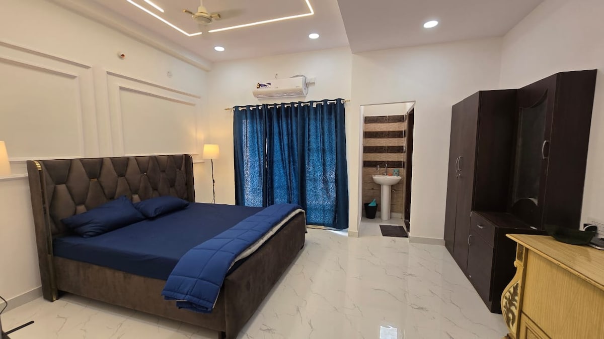 Bright & Spacious Downtown Stay is a newly constructed, spacious 2BHK apartment and a guest favourite for its comfort and cleanliness. Located on the second floor with lift in a quiet area, it is ideal for tourists, families, professionals, and long stays. The home features 2 bedrooms, 2 bathrooms with geysers, AC, private Wi-Fi, Smart TV , washing machine, fridge, and parking inside the building. Easy groceries, food delivery, and cab access, close to major tourist spots and Malakpet Metro.