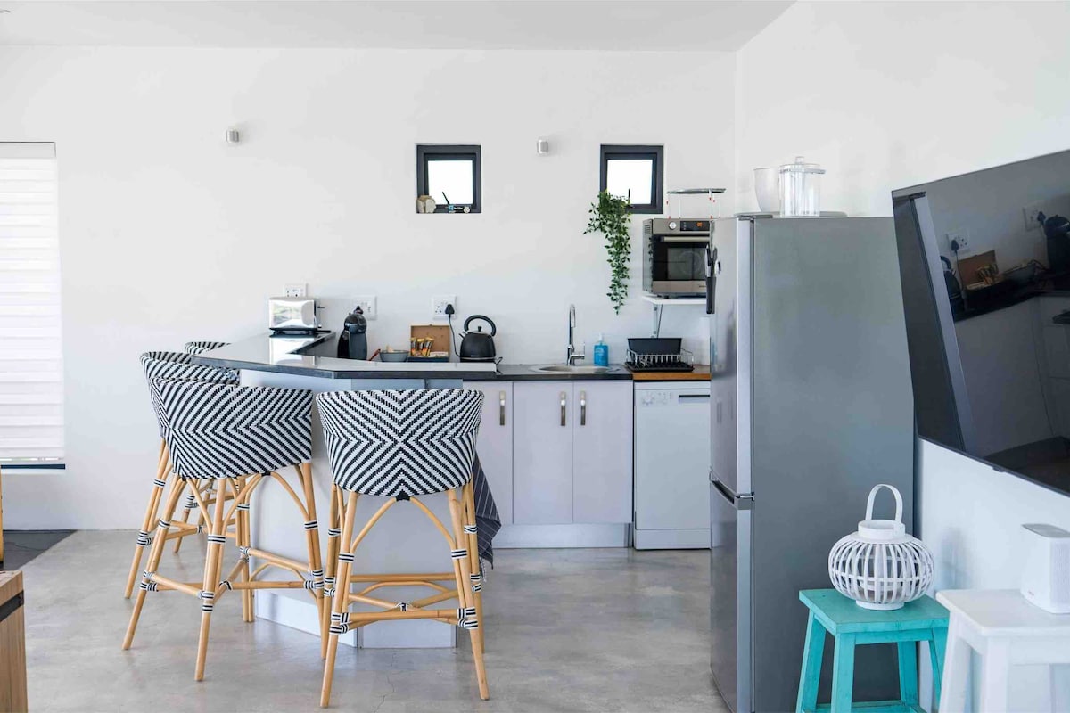 Un estudio espacioso, de planta abierta y estilo loft, con capacidad para 2 personas. Perfecto para una pareja o un viajero soltero. Tranquilamente apartado de la carretera principal y a poca distancia a pie de la playa, es el lugar perfecto para una escapada, una misión de surf o una estancia de negocios. Entrada independiente a un patio con vista directa a Lowerpoint. Saborea espectaculares amaneceres mientras disfrutas de una taza de café por la mañana o disfruta de un braai en el patio con atardeceres, mientras observas las olas y avistas delfines.