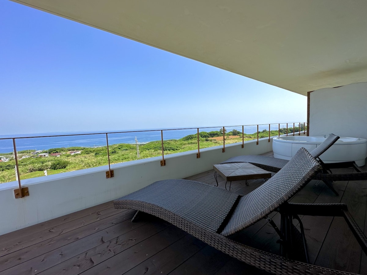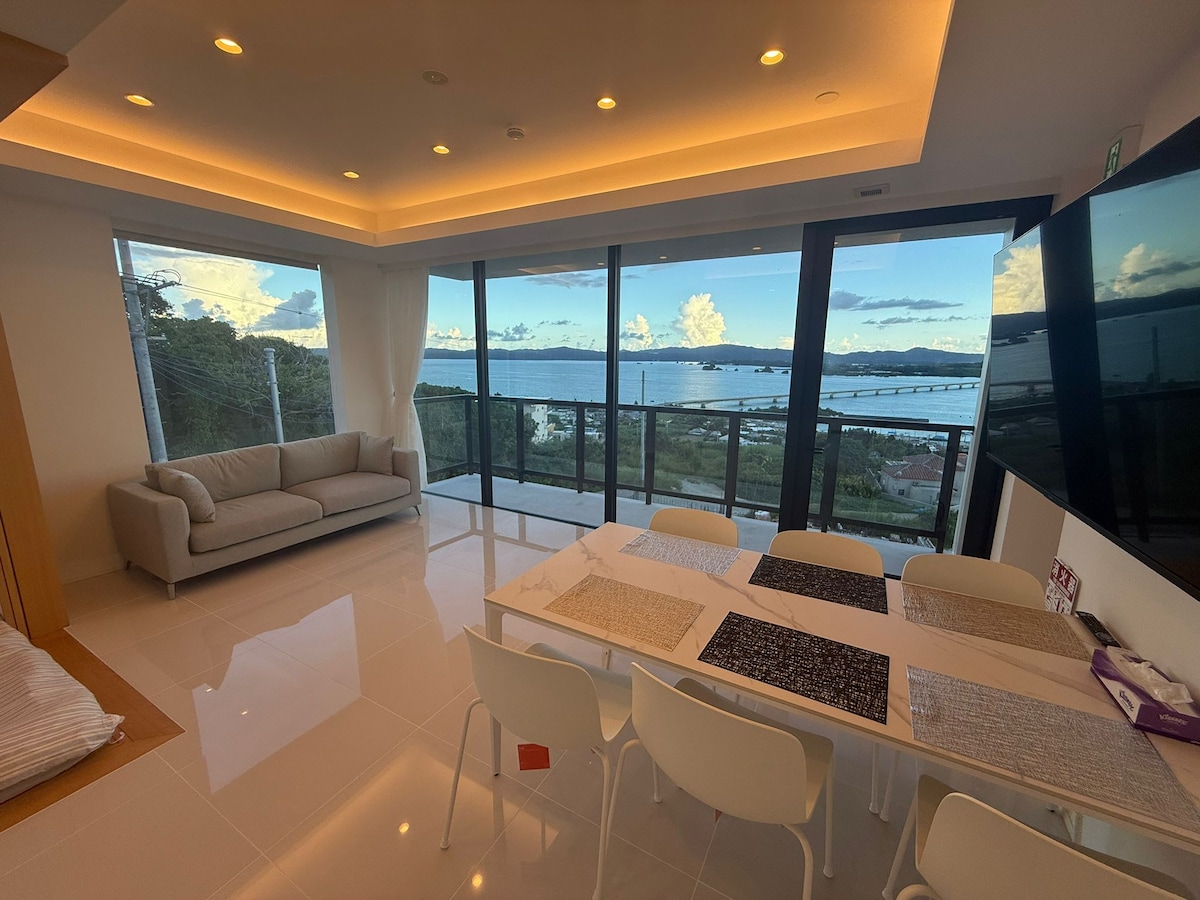 ¡Villa con vistas al mar en Kouri Island! ¡Disfrute de una barbacoa en la terraza con vistas al mar y un jacuzzi en la azotea con unas vistas espectaculares!
