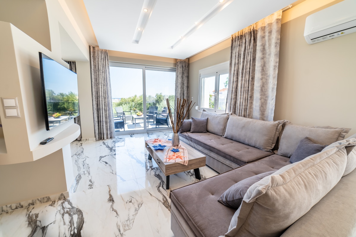 Disfruta de un lujo inigualable en Olvios Villa II. Ubicada a pocos pasos de tiendas vibrantes, restaurantes exquisitos y playas vírgenes, esta impresionante villa cuenta con una resplandeciente piscina al aire libre de 35 m², zona de barbacoa e impresionantes vistas a la costa. Diseñada para un máximo de ocho huéspedes, esta escapada por excelencia ofrece el escenario perfecto para recuerdos inolvidables de verano y momentos preciados con tus seres queridos. Mejora tu escapada con servicios prémium y acceso exclusivo a la relajación pura.