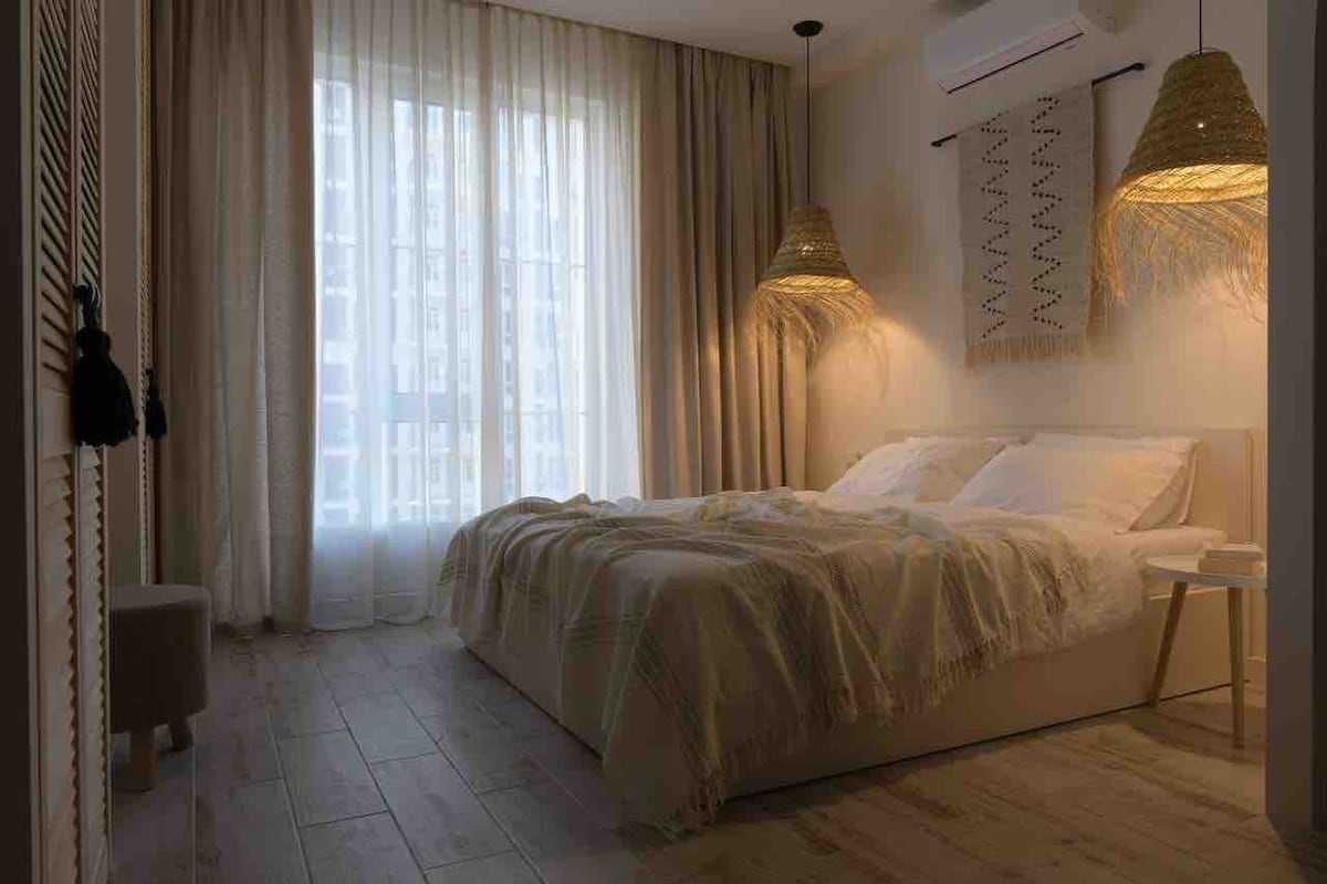 ℹ️ No power cuts as for today ℹ️ Nearest official shelter is in the underground parking in the house, easy accessible with an elevator. The apartment (90 sqm) fits up to 4 travellers and has 2 separate bedrooms (1 queen-size bed 🛏️ / 1 sofa-bed 🛋️), 2 full master bathrooms (shower🚿/tub 🛁), 1 guest bathroom, 1 full kitchen + dining (living) area. ▫️14th floor (16-story building); ▫️2 elevators; ▫️24/7 security in the house; ▫️Self check-in with security staff/concierge and a smart lock.
