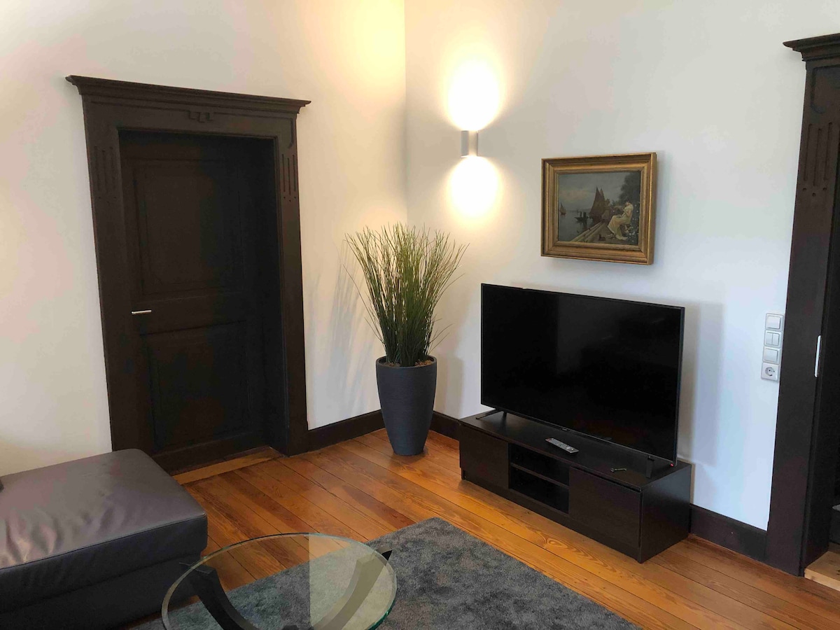Vista a la montaña y al jardín, grande de 80 metros cuadrados, plano semiabierto luminoso y espacioso, plano semiabierto, un dormitorio, cama, así como un ático, capacidad para 4 personas. El apartamento tiene conexión rápida a Internet de 400 Mbit/s, filtro de agua purificada, aire acondicionado y espacio de estacionamiento gratuito. Diseño minimalista. Edificio patrimonio Art nouveau 1900 recientemente renovado diseñado por Kohlbecker Architects. Calle tranquila en el centro de Baden Baden, a pocos pasos de Festspielhaus, bares y restaurantes de Roomers Hotel, supermercados, casino, museos y spas romanos.