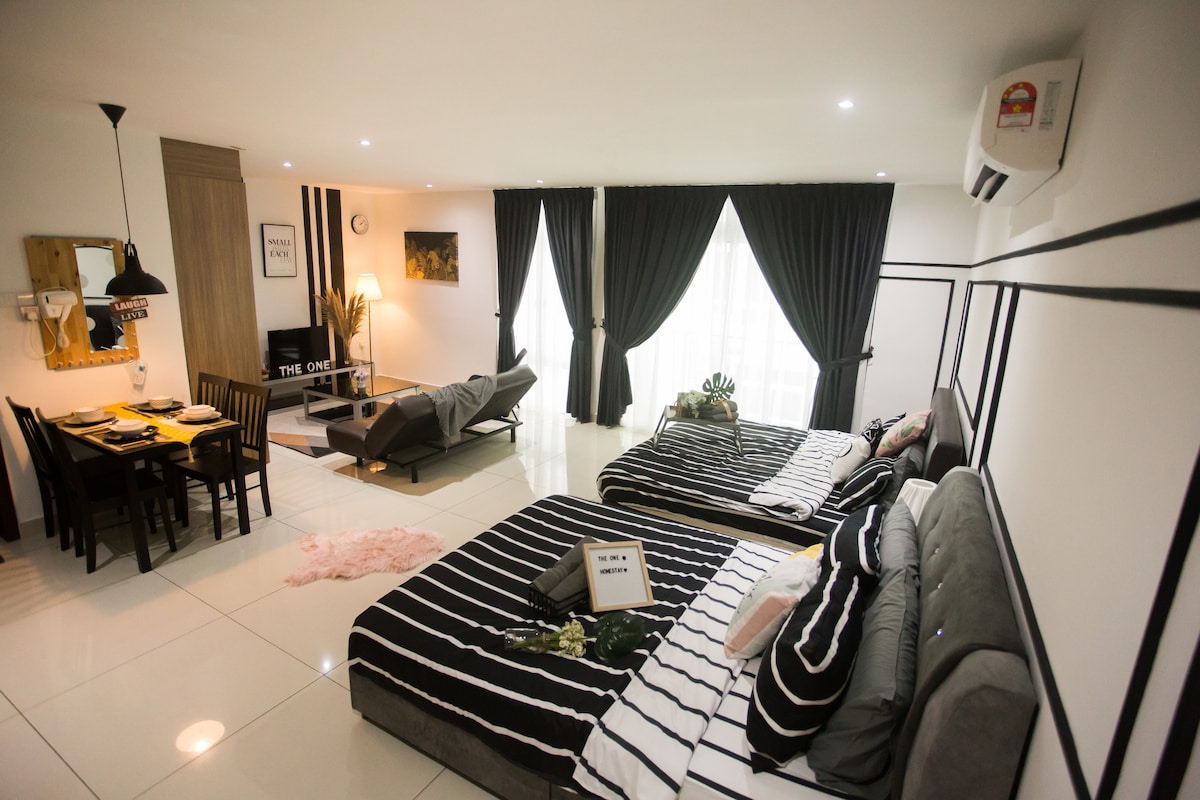 Relájate en un elegante y acogedor estudio de Airbnb con una lujosa cama tamaño king en Twin Galaxy, ¡el mejor lugar de la ciudad de JB! A solo 5 minutos de CIQ, City Square y KSL Mall. Disfruta de un televisor inteligente, wifi gratuito, cocina pequeña, lavadora y vistas impresionantes de la ciudad por la noche. El condominio cuenta con piscina infinita, gimnasio, sauna y estacionamiento seguro. Autobús de traslado gratuito a CIQ/KSL/Mid-Valley. Ideal para parejas, estancias solitarias, familias pequeñas o escapadas de fin de semana. Limpio, elegante y cerca de centros comerciales, comida y atracciones de JB. ¡Tu escapada perfecta a la ciudad te espera!