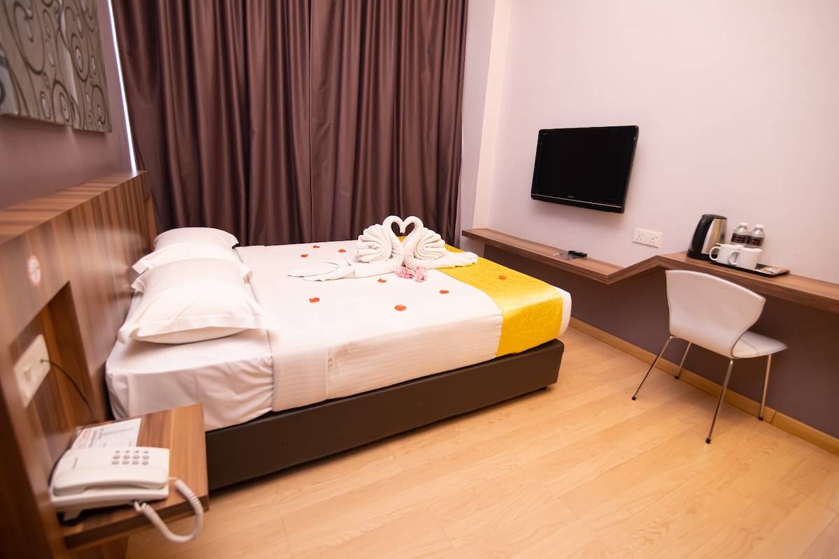Indulge in comfort and convenience during your stay in Kuantan by booking our Executive Queen Room. Our tastefully decorated and spacious room features a queen-size bed adorned with fresh linens and fluffy pillows to ensure a restful sleep. Enjoy your favorite shows on the flat-screen TV, stay connected with free Wi-Fi, and catch up on work at the cozy desk and chair. The private bathroom is stocked with soft towels and essential toiletries for your convenience.