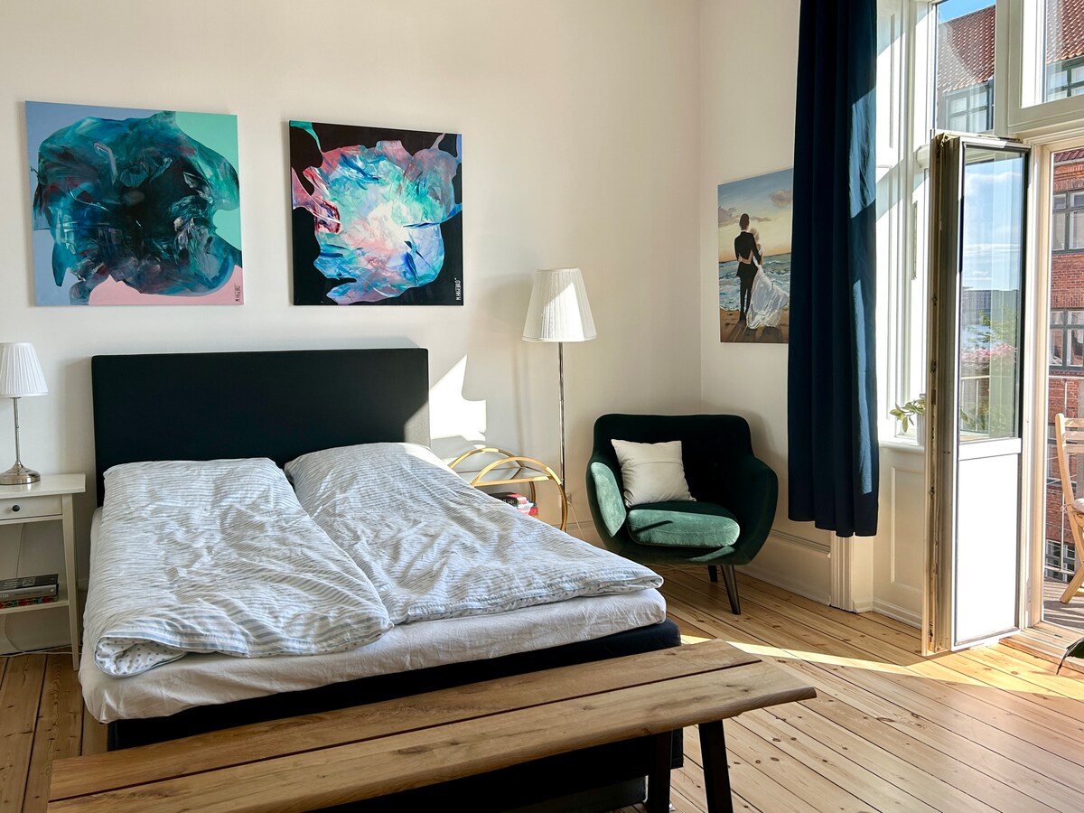 Nuevo apartamento luminoso de 81 m2, con ascensor, balcón y garaje con tu propio cargador de coche. El apartamento es adecuado para 3 adultos o 2 adultos y 2 niños. La propiedad no tiene escalones y es accesible en silla de ruedas. Muy buena ubicación: - A 10 minutos a pie de Tivoli y de la plaza del Ayuntamiento. - A 5 minutos a pie de la estación de metro. - A 50 metros del baño del puerto al aire libre. - Muchas cafeterías y tiendas agradables cerca (también alquiler de bicicletas).