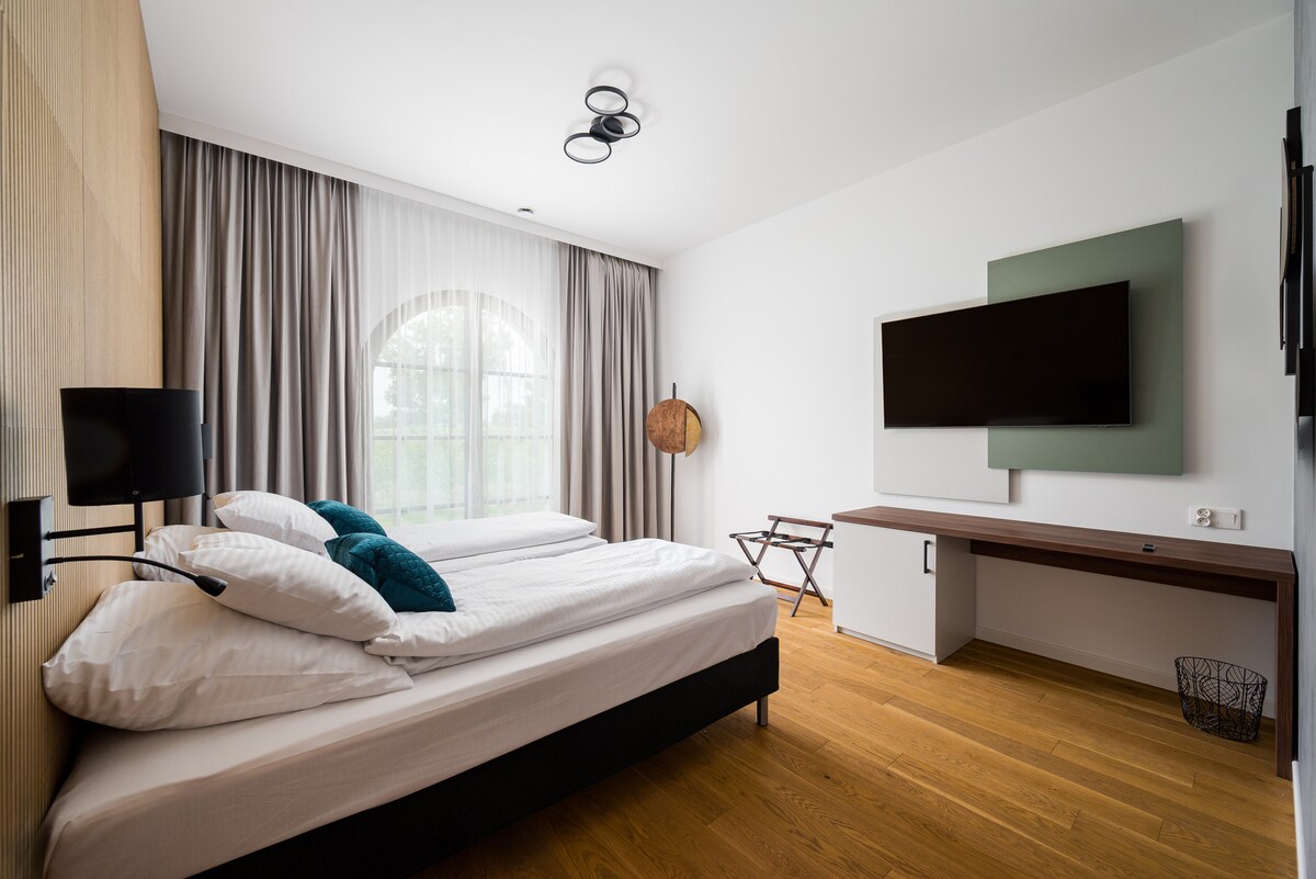 La lista es para una habitación doble en Dworku o Oficyna en el hermoso Palacio Mortęgi en Mazury. Esta es una habitación sin desayuno para 2 personas con baño. El precio incluye el uso de atracciones hoteleras en esta área de bienestar (piscina, bañera de hidromasaje, sauna), sala de deportes, mini gimnasio y mini zoológico.