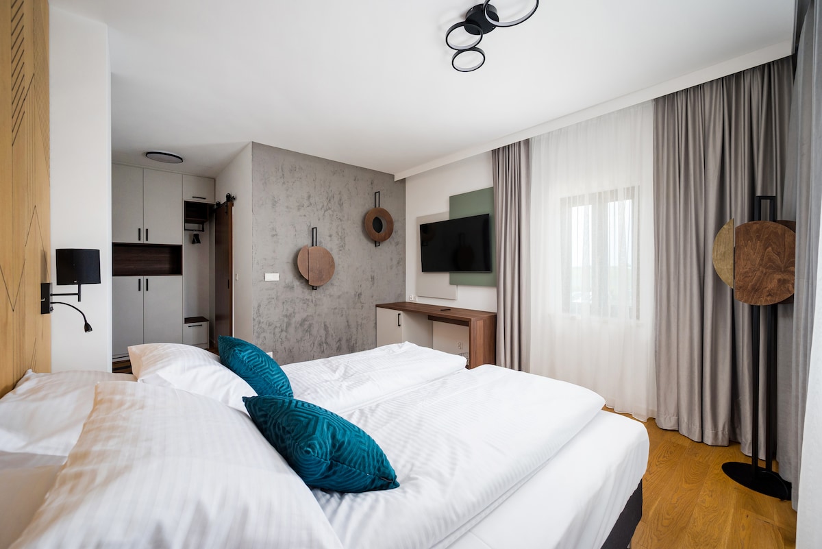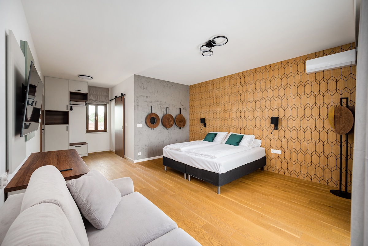 Te invitamos a escapar del ajetreo de la vida y dejar atrás las tareas y las listas de tareas mientras te relajas, recargas y equilibras junto al lago en nuestra casa de vacaciones. Nuestro apartamento en el último piso es luminoso y espacioso, y tiene una estética limpia y ordenada que lo convierte en el espacio perfecto para escapar de la ciudad y las responsabilidades de la vida cotidiana. El diseño minimalista zen y la serena paleta de colores ayudan a calmar y abrir la mente sin distracciones.