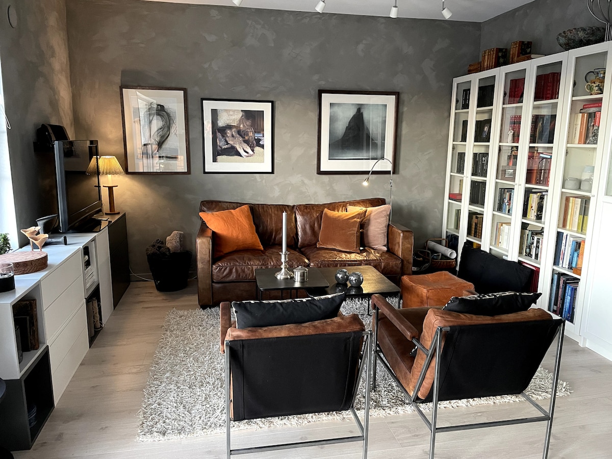 Acogedor apartamento loft de dos dormitorios recientemente renovado justo en el centro de Kristiansand. Se encuentra a 5 minutos a pie de la estación de tren y autobús. Consta de sala de estar/cocina, dos dormitorios y un baño. Ubicado en el cuarto piso, sin ascensor. La cocina tiene cafetera, nevera/congelador, estufa, microondas y lavavajillas. El salón está amueblado con un sofá de esquina y una mesa de comedor con 4 sillas. El dormitorio más grande tiene una cama doble (150 cm). El segundo dormitorio tiene una cama individual (90 cm). Las camas están listas a tu llegada.