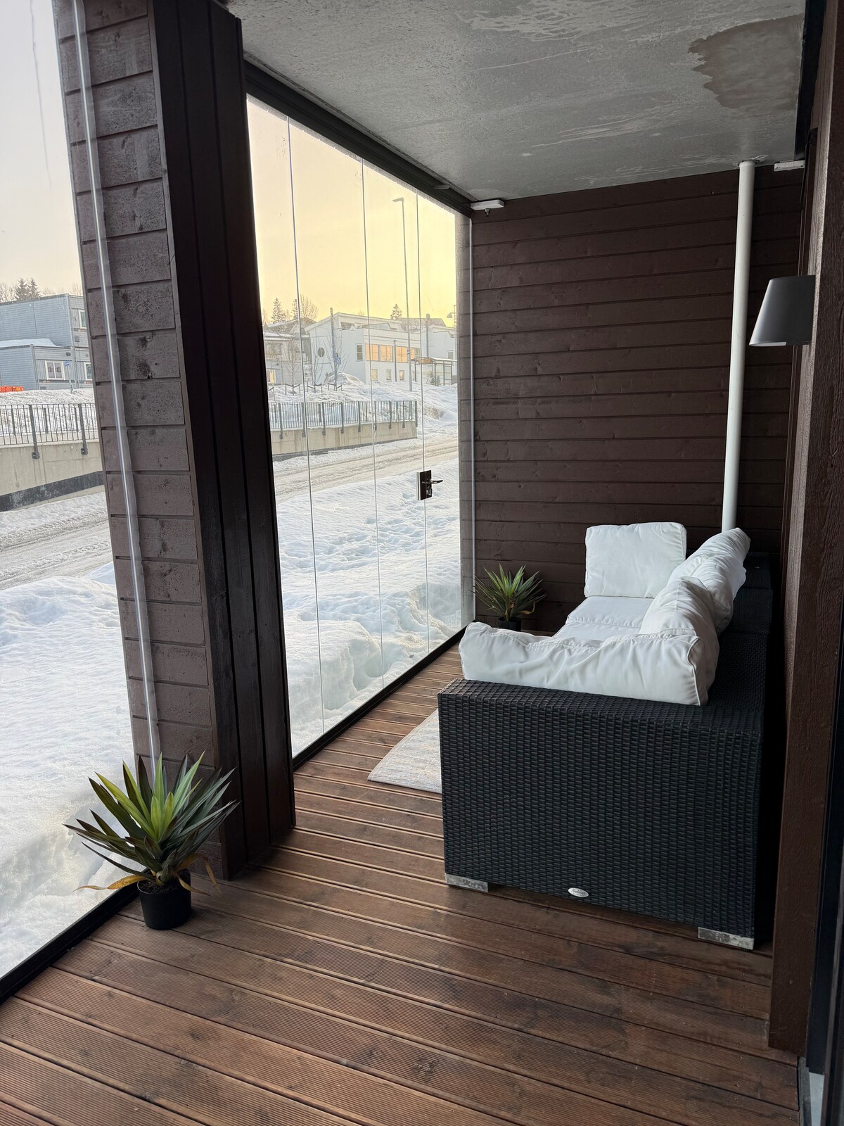 Estudio panorámico ártico con jacuzzi exterior