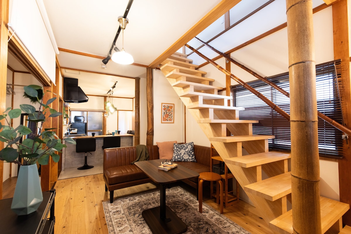 【築100年京町家 × モダン快適ステイ】|清水寺・祇園・河原町も徒歩圏内|最大8名宿泊可 歴史ある京都・清水五条エリアに佇む、築100年以上の京町家を2025年にリノベーション。 家族旅行やグループ滞在にぴったりな3LDKの貸切町家で、伝統建築と快適性が融合した“暮らすような京都ステイ”を叶えます。 まるで時をさかのぼったような、古き良き日本の静けさをご体感。 🛌 部屋 ・グループ宿泊:ベッドルーム3室(セミダブル×2、クイーンベッド×1、和式布団×2)+リビングソファベッド2台 ※寝具は要相談 ・和モダンの洗練空間:真鍮色のモダン家具と、障子や畳を活かした和風装飾が融合 ・長期滞在歓迎:洗濯乾燥機・フルキッチン完備で自炊・洗濯も安心 ・娯楽も充実:Nintendo Switch&プロジェクターで映画やゲームを満喫 ・無料自転車(4台):周辺の散策や観光に便利 🚶♀️ アクセス抜群 ・最寄りの七条駅/清水五条駅へ徒歩8分 ・祇園・河原町まで徒歩15分 ・阪急線で大阪へ1本 ・京都駅、清水寺、伏見稲荷、二条城、嵐山など、主要観光地への移動もスムーズ