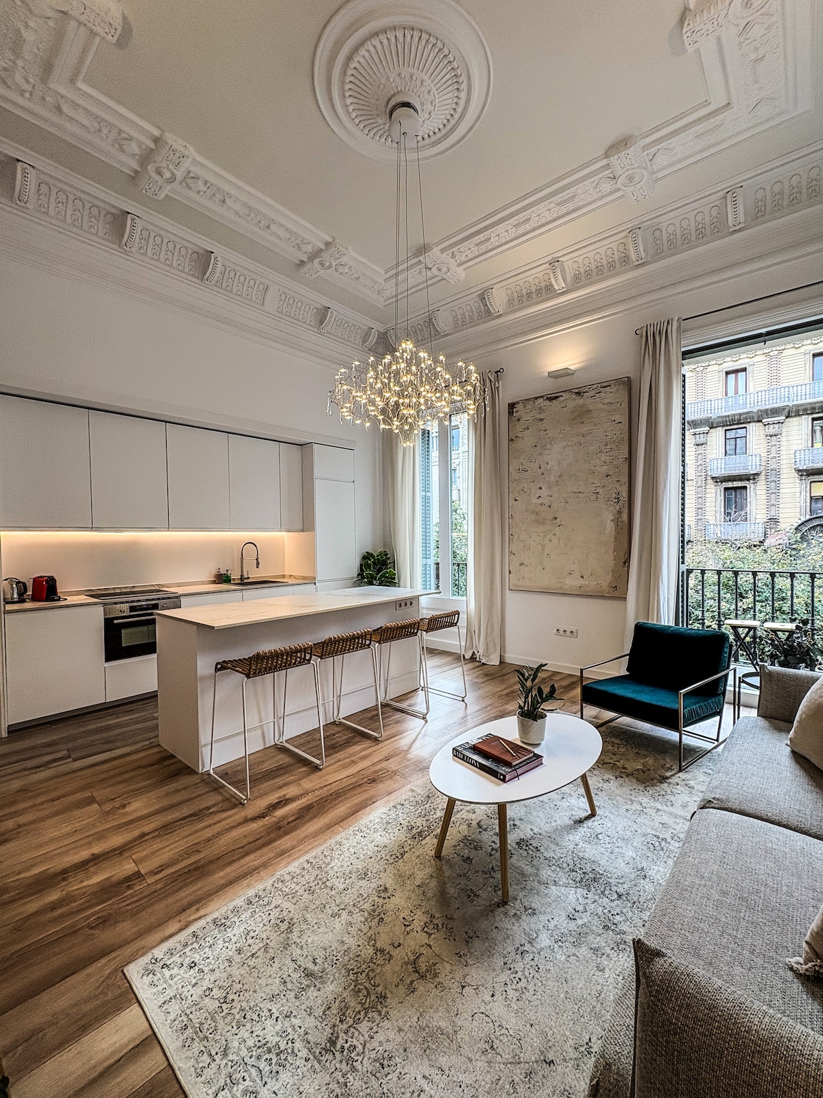 Inmejorable ubicación. Mi apartamento, totalmente rehabilitado, se encuentra en el mismo corazón del Eixample, a tan solo tres calles de Plaza Catalunya y Paseo de Gracia, rodeado de las joyas arquitectónicas más importantes de los maestros del Modernismo como Gaudí o Puig i Cadafalch y a dos pasos del Born y Gótico, es decir del centro histórico de Barcelona.